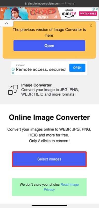 - 좋아하는 웹 브라우저를 열고 Simple Image Converter를 방문하십시오