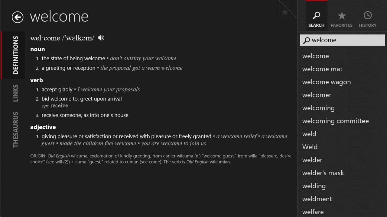 단어를 검색하고 즐겨찾기에 추가할 수 있습니다. 이것은 또한 당신이 찾은 단어의 역사를 저장합니다.