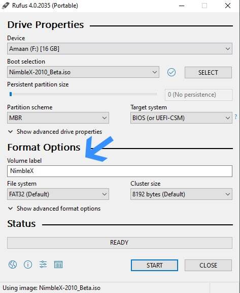 3. 이제 부팅 가능한 미디어에 이름을 지정하십시오. 무엇이든 될 수 있지만 간단하게 유지하기 위해 OS로 유지했습니다.
