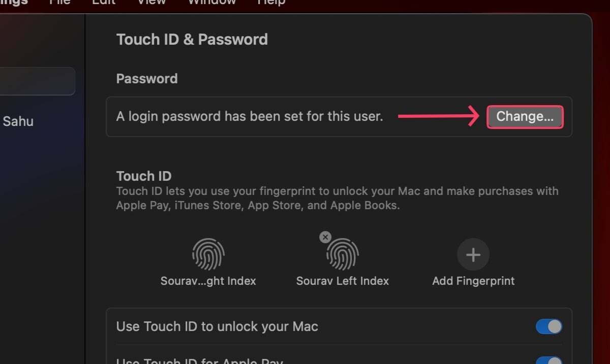 - 비밀번호 아래에서 변경 옵션을 클릭하세요
