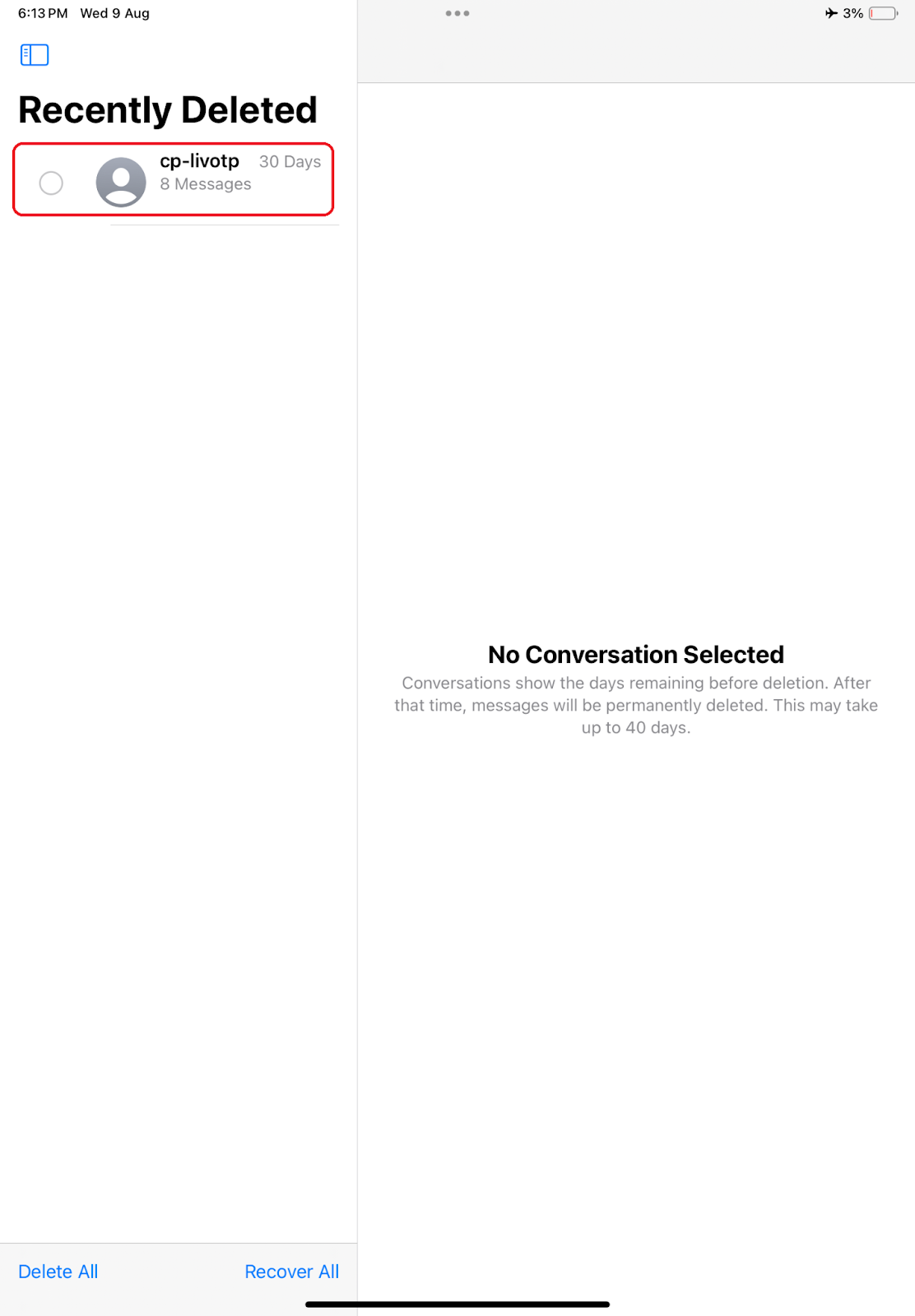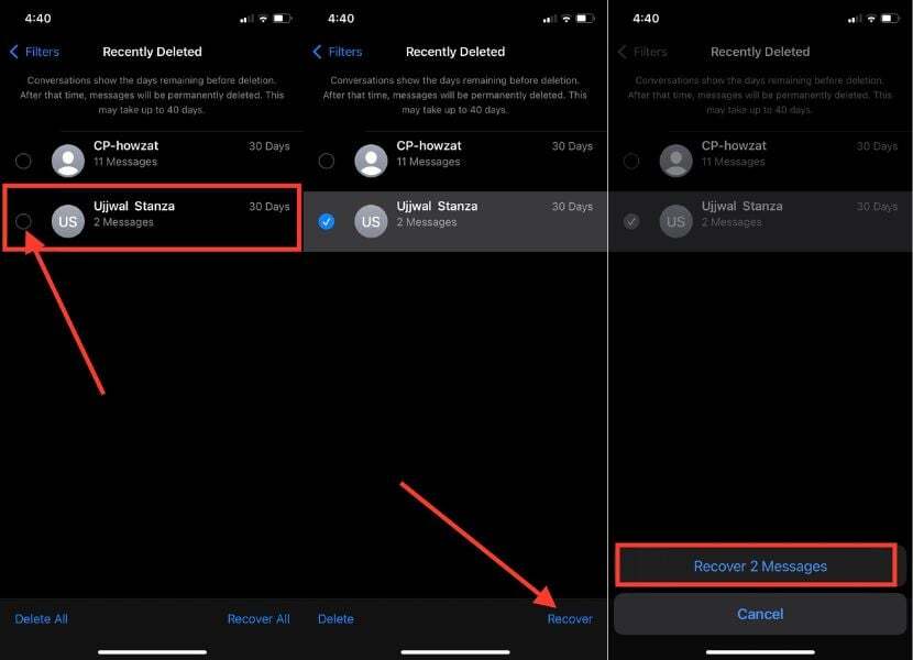 지난 30일 이내에 삭제된 메시지는 이 기술을 사용하여 쉽게 복구할 수 있습니다. 그러나 이 30일 기간이 만료되면 복구 가능성이 감소합니다. 그러나 이는 걱정할 필요가 없습니다. 텍스트가 한 달 이상 삭제된 경우 나중에 대체 복구 방법을 다루겠습니다.