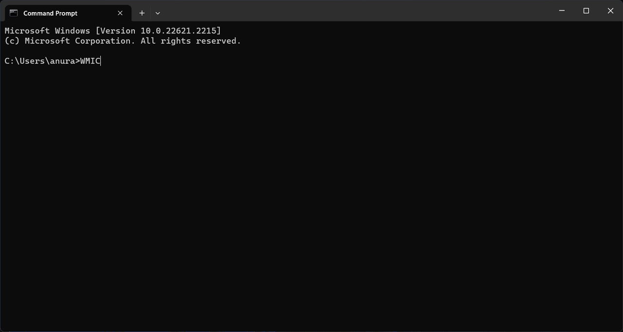 - 명령 프롬프트에 WMIC 명령을 입력 하고 Enter 키를 누릅니다