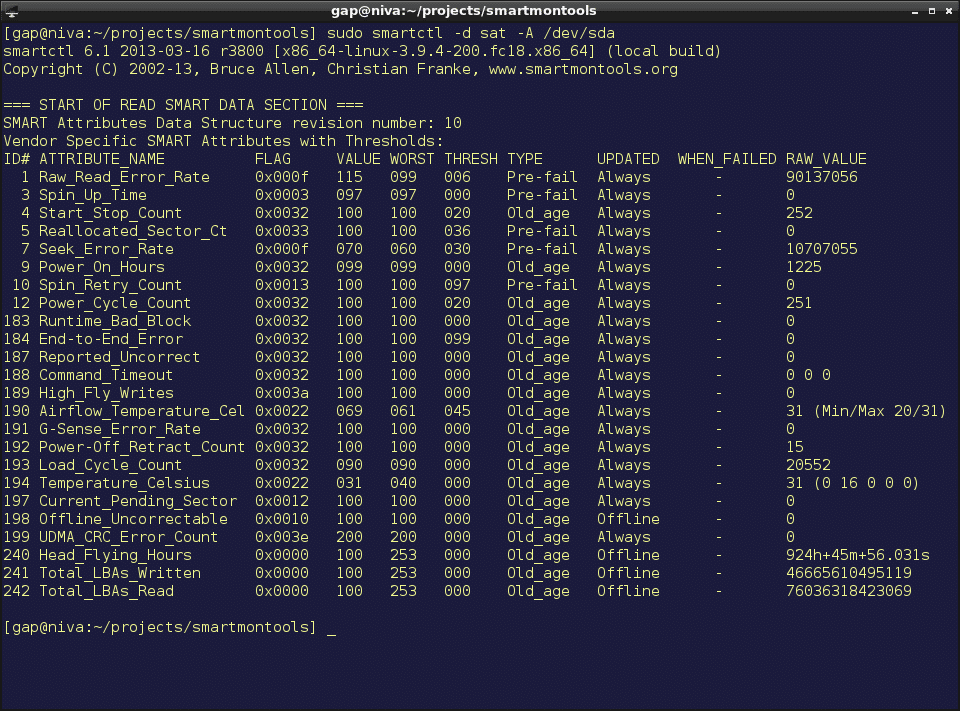 SSD를 모니터링하고 SMART 정보를 얻으려면 Smartmonotools를 사용할 수 있습니다. 이 도구는 ATA/SATA, NVMe, SCSI/SAS를 포함한 다양한 디스크 유형을 지원합니다.