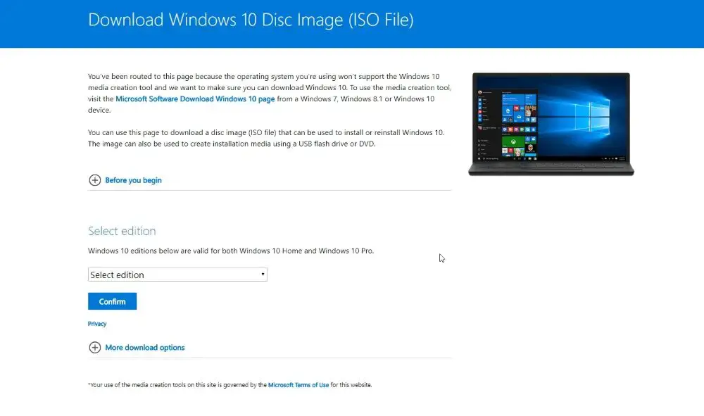 참고: 다른 OS(Ubuntu, Mac)/스마트폰/Hide.me와 같은 프록시 서비스를 통해 다운로드 페이지를 방문해야 합니다. 그렇지 않으면 미디어 생성 도구를 다운로드할 수 있는 옵션만 제공됩니다.