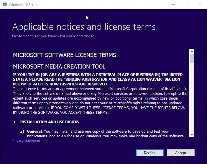 부팅 가능한 USB 플래시 드라이브를 만들기 위해 타사 앱을 활용하지 않으려면 Microsoft의 Windows 10 다운로드 페이지 에서 미디어 생성 도구를 다운로드해야 합니다