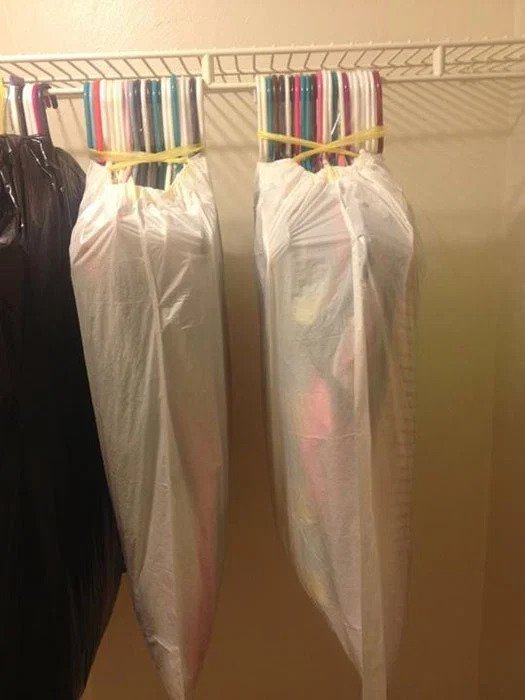 한 옷장에서 다음 옷장으로 옷을 빠르게 옮기려면 쓰레기봉투를 활용하세요. 아뇨, 당신의 패션 감각이 형편없다는 뜻은 아닙니다. 대신, 옷이 격납고에 있는 동안 쓰레기 봉투를 사용하여 모든 옷을 포장할 것을 제안합니다.