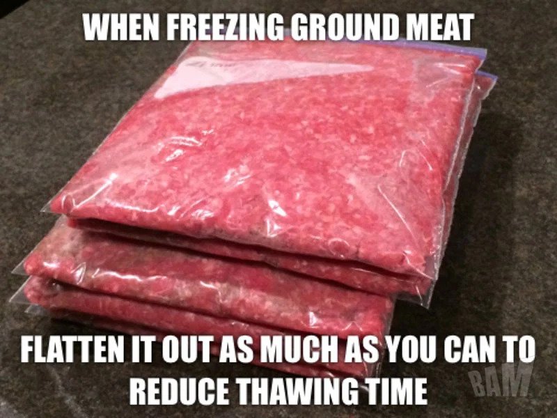 대량 구매는 주방을 가득 채우면서 돈을 절약하는 가장 좋은 방법 중 하나일 수 있습니다. 다진 고기를 구매하는 습관을 들이면 냉동 절차를 변경하여 효율성을 높일 수 있습니다. 대부분의 쇼핑객은 추가 예방 조치를 취하지 않고 여분의 다진 고기를 냉동실에 버릴 것입니다. 냉동된 고기를 쉽게 접근할 수 있도록 하려면 냉동하기 전에 고기를 최대한 펴는 것이 좋습니다.