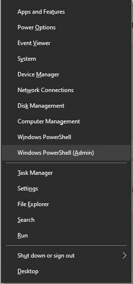 1. Windows + X 를 눌러 관리자 모드에서 Windows Powershell을 엽니다