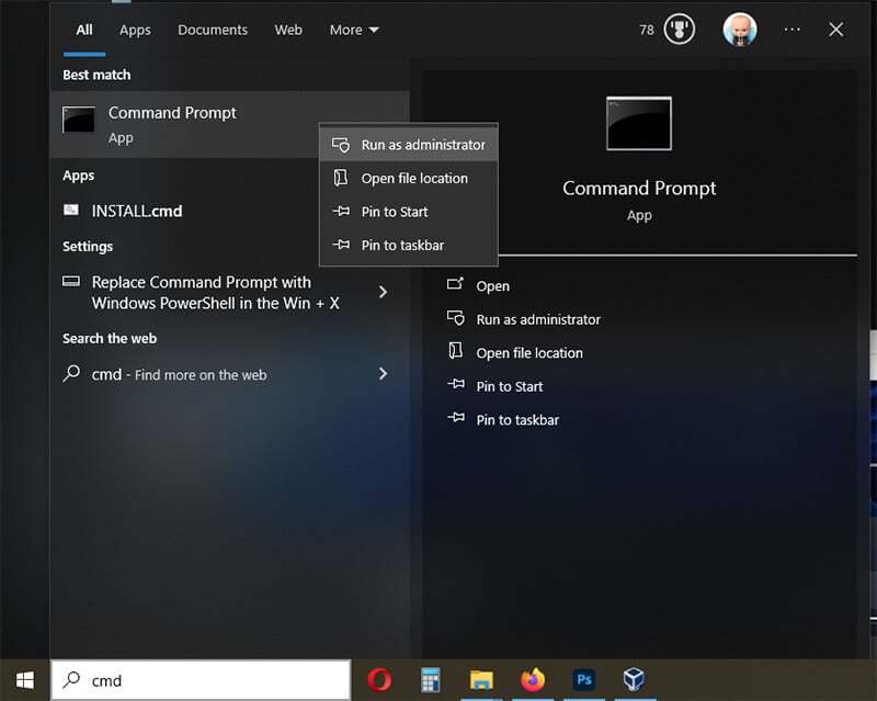 1. 시작 메뉴에서 관리자 권한으로 명령 프롬프트로 이동합니다.