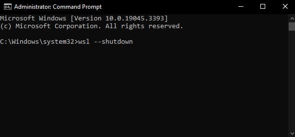 6. 이제 wsl –shutdown을 입력 하고 Enter 키를 눌러 WSL 서비스를 다시 시작합니다.