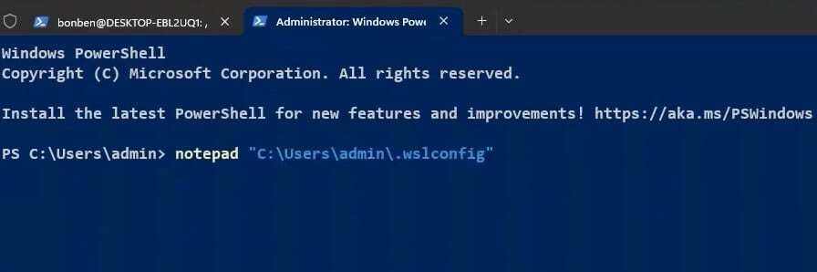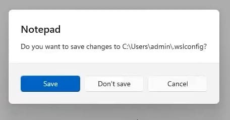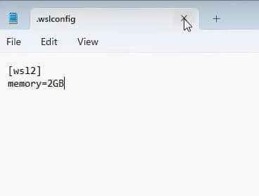 4. 그런 다음 WSL2에 허용할 최대 메모리 구성을 위해 다음을 입력합니다.