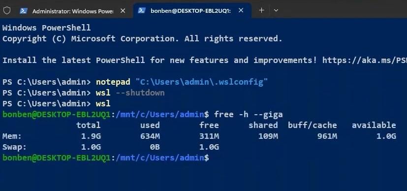 번호를 교체하여 RAM을 변경할 수 있습니다. 우리는 컴퓨터와 WSL 사이의 균형을 맞추기 위해 2GB를 적당하게 유지했습니다.