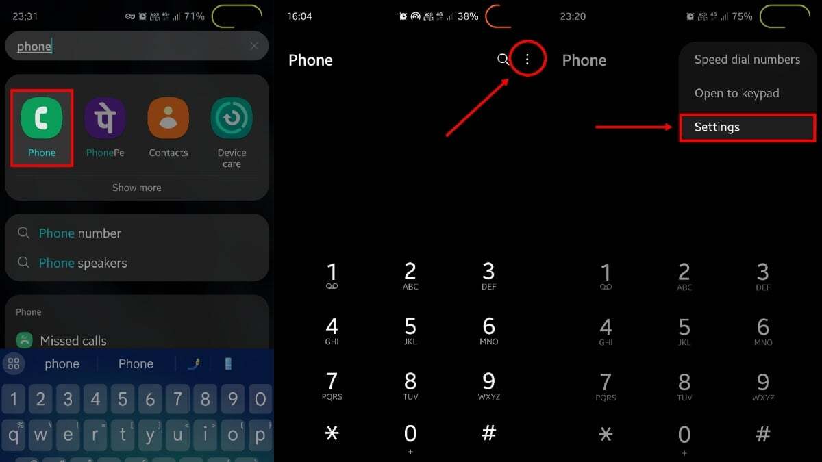 - 앱 트레이에서 전화 앱을 열거 나 검색하여 엽니다.