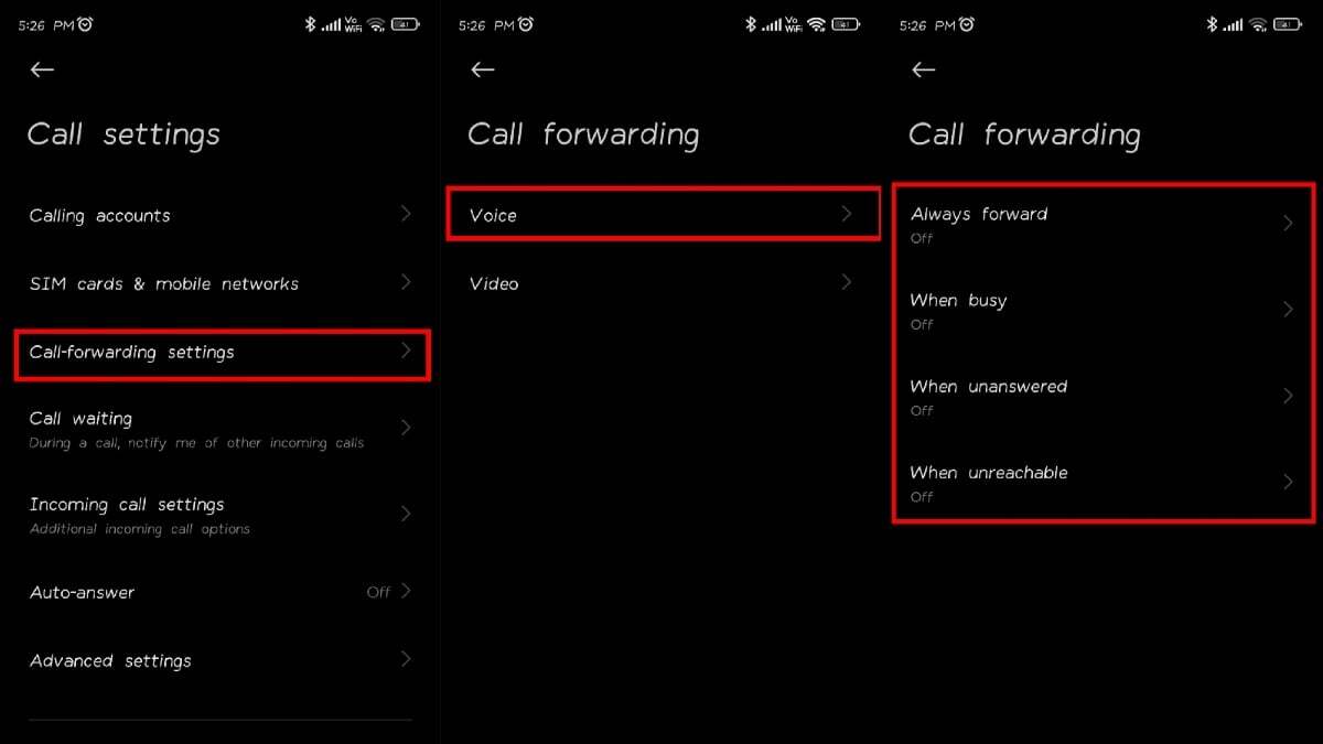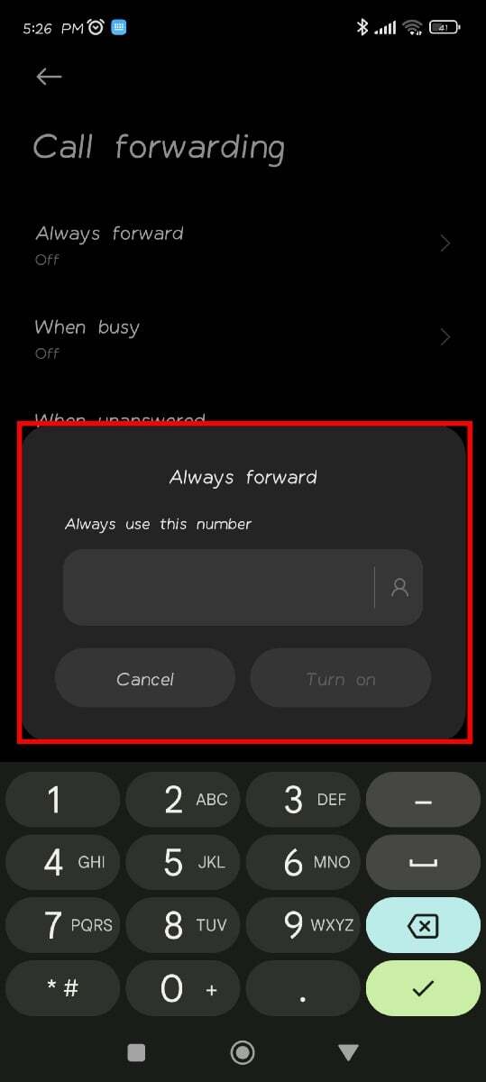 특정 다이얼 코드를 사용하여 Andoird에서 조건부 착신 전환을 비활성화할 수 있습니다. 조건부 착신 전환에는 응답하지 않은 전화에 대한 착신 전환, 사용할 수 없는 전화에 대한 착신 전환, 통화 중인 통화에 대한 착신 전환이 포함됩니다.