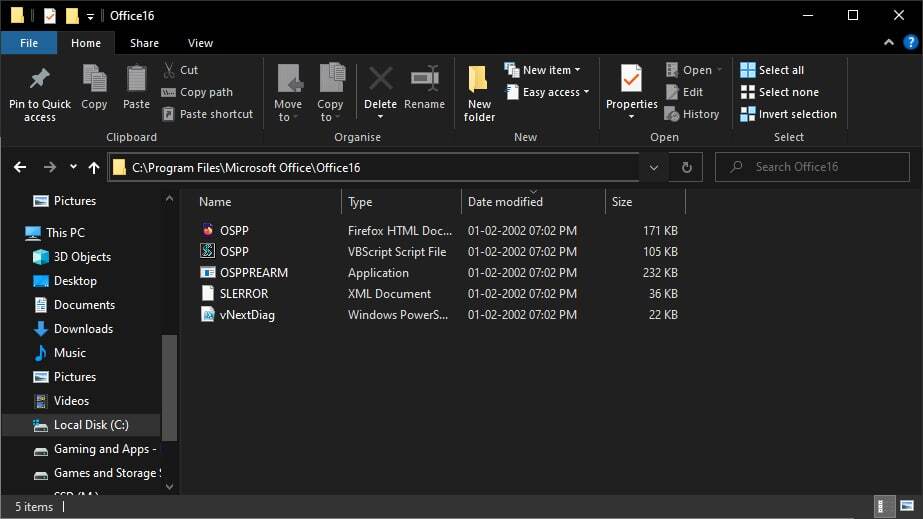 또한 여기에서 OSPPREARM.exe 파일을 찾을 수 없는 경우 대신 이 주소로 이동하세요.
