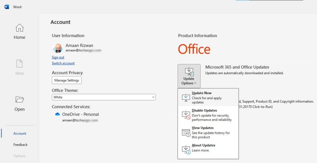 7. Microsoft Office 앱은 몇 초 후에 업데이트되며 계속해서 사용할 수 있습니다.