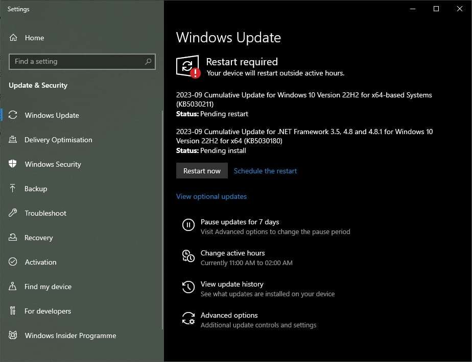 3. 사용 가능한 항목이 다운로드되면 지금 다시 시작을 클릭하여 즉시 설치해야 합니다.