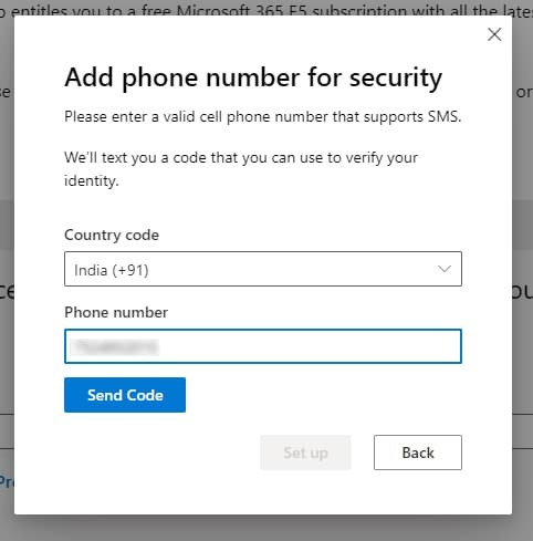 이 방법을 사용하려면 OTP가 제공되므로 SMS를 수신할 수 있는 활성 휴대폰 번호가 필요합니다.