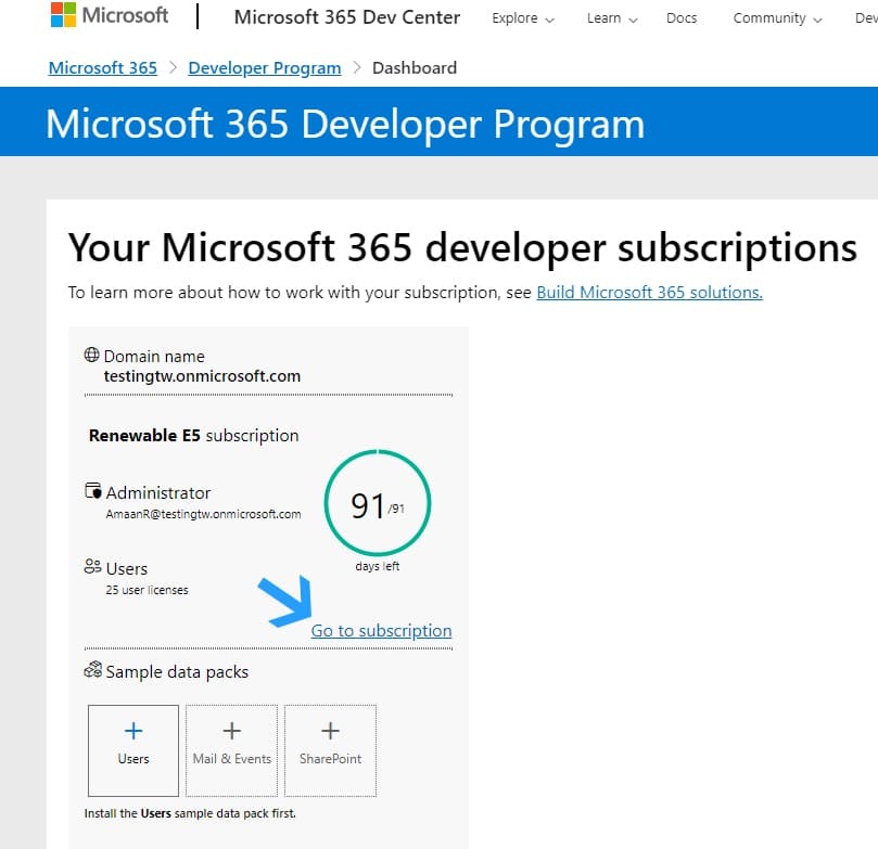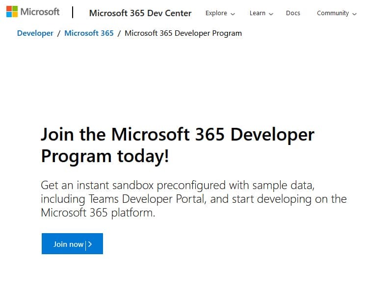 1. Microsoft 365 개발자 페이지로 이동합니다.