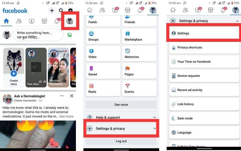 방법 1: 페이스북 앱을 사용하여 페이스북과 인스타그램 연결 해제