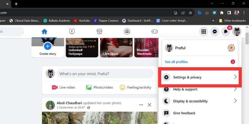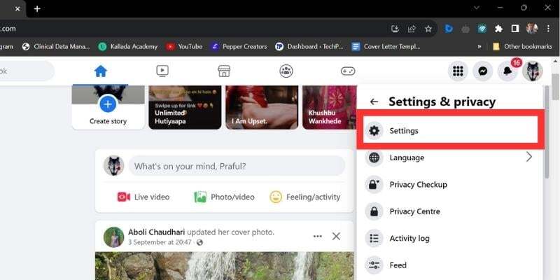 3단계: 설정 및 개인정보 보호 로 이동합니다