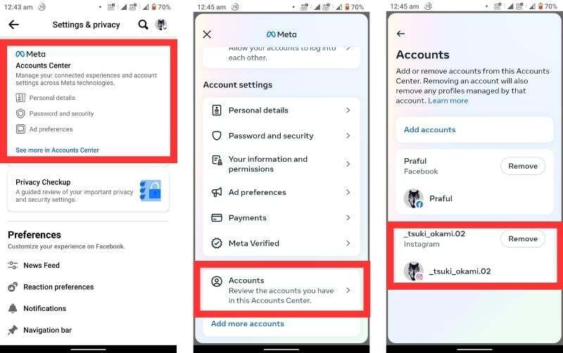 - Facebook 앱을 사용하여 Facebook과 Instagram 연결을 해제하는 방법