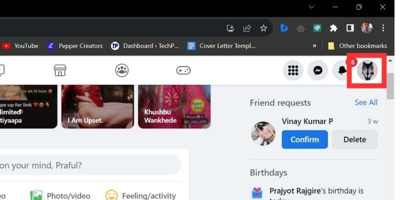 2단계: 휴대폰 화면 오른쪽 상단에 있는 프로필 아이콘을 탭하세요