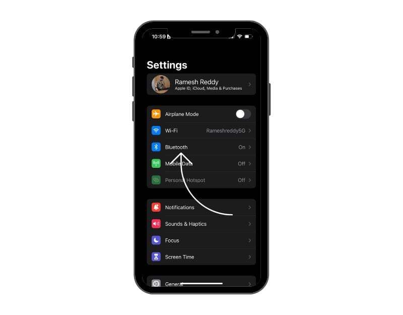 - iPhone 또는 iPad에서 Bluetooth 설정을 엽니다. 이렇게 하려면 iPhone에서 설정 앱을 열고 Bluetooth 옵션을 탭하세요.