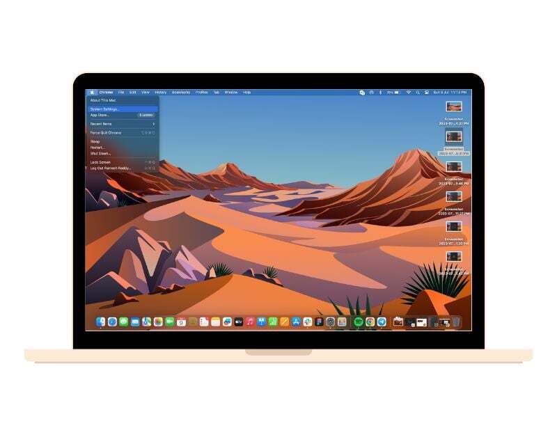 - 왼쪽 상단 모서리에 있는 Apple 메뉴를 클릭하고 시스템 환경설정을 선택합니다. 또는 Dock에서 설정 아이콘을 클릭할 수도 있습니다.
