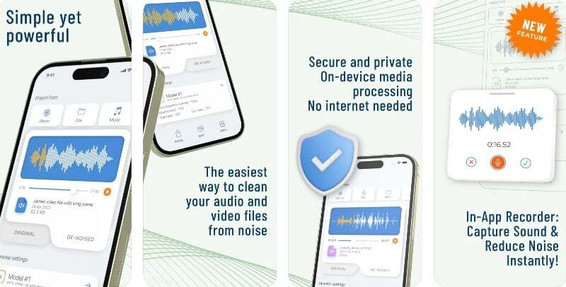 - 이 앱은 오디오 및 비디오 소음 감소 기능을 모두 제공합니다.