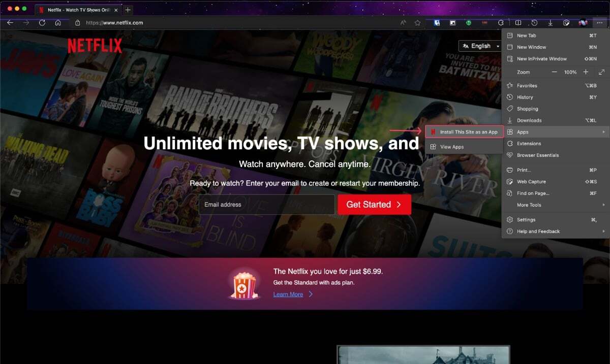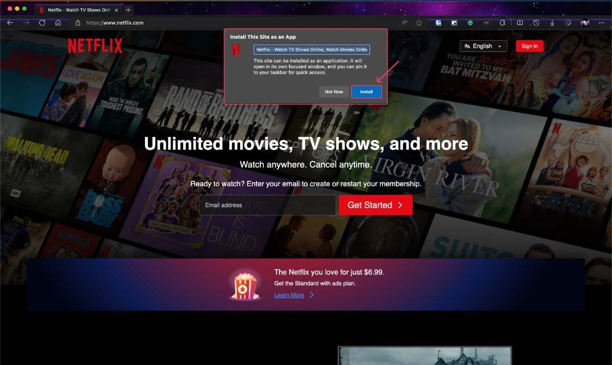 MacBook에서 Netflix를 시청하는 가장 좋고 윤리적인 방법은 Netflix 공식 웹사이트를 이용하는 것입니다. 웹사이트를 앱처럼 사용하는 느낌을 주기 위해 대부분의 브라우저는 웹페이지를 바탕화면 바로가기로 변환할 수 있습니다. 이러한 바로가기는 홈 화면에 배치하고 필요할 때 실행할 수 있습니다. 이러한 바로가기에서 브라우저 확장 기능을 사용할 수도 있습니다.