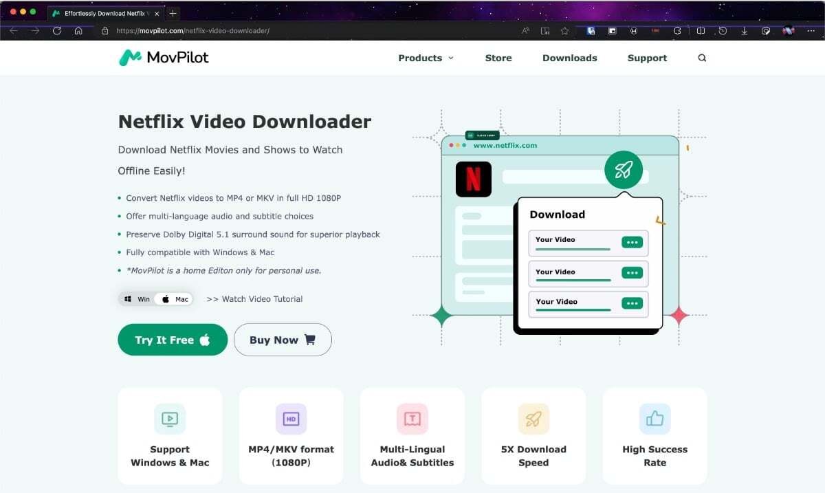 Mac에서 Netflix를 시청하기 위해 약간의 현금을 지불하고 싶다면 MovPilot Netflix Video Downloader를 사용해 보세요. MovPilot은 Netflix와 같은 앱에서 Mac으로 타이틀을 다운로드할 수 있는 몇 안되는 제공업체 중 하나입니다. MovPilot은 Amazon Prime, Disney+, Hulu 및 HBO Max에 대해 유사한 다운로더 서비스를 제공합니다. 설정 방법은 다음과 같습니다.
