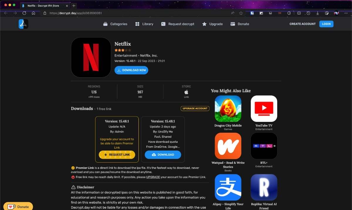 PlayCover 애플리케이션 설치가 완료되었습니다. PlayCover에서는 iOS 앱의 복호화된 IPA 버전을 설치해야 하므로 ARM Converter 및 Decrypt와 같은 웹사이트에서 복호화된 Netflix 버전을 설치해야 합니다. 이제 Mac에 PlayCover가 포함된 Netflix를 설치하는 절차를 따르세요.