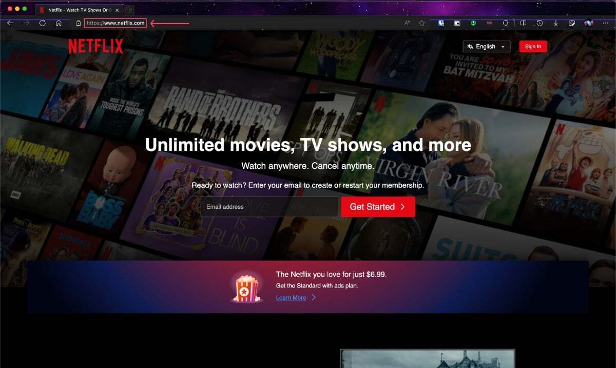 - Edge를 열고 Netflix 웹사이트로 이동합니다.