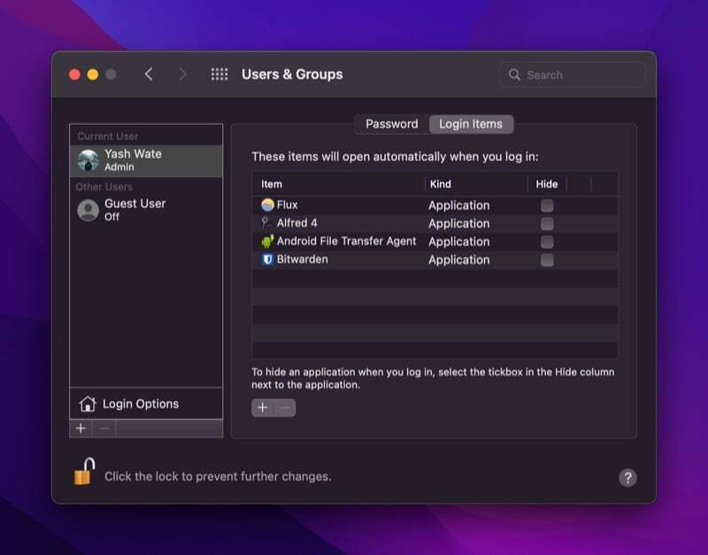 이러한 시나리오의 경우 다음과 같이 Mac 시스템 환경 설정 에서 로그인 항목을 비활성화할 수 있습니다.