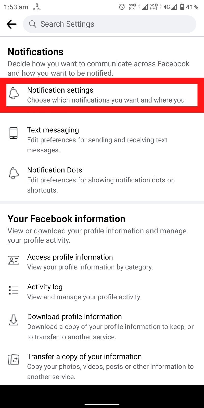 5단계 : 아래로 스크롤하여 ' 알림 설정 '을 탭합니다