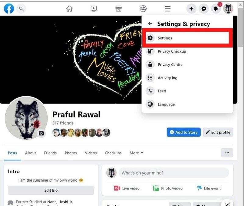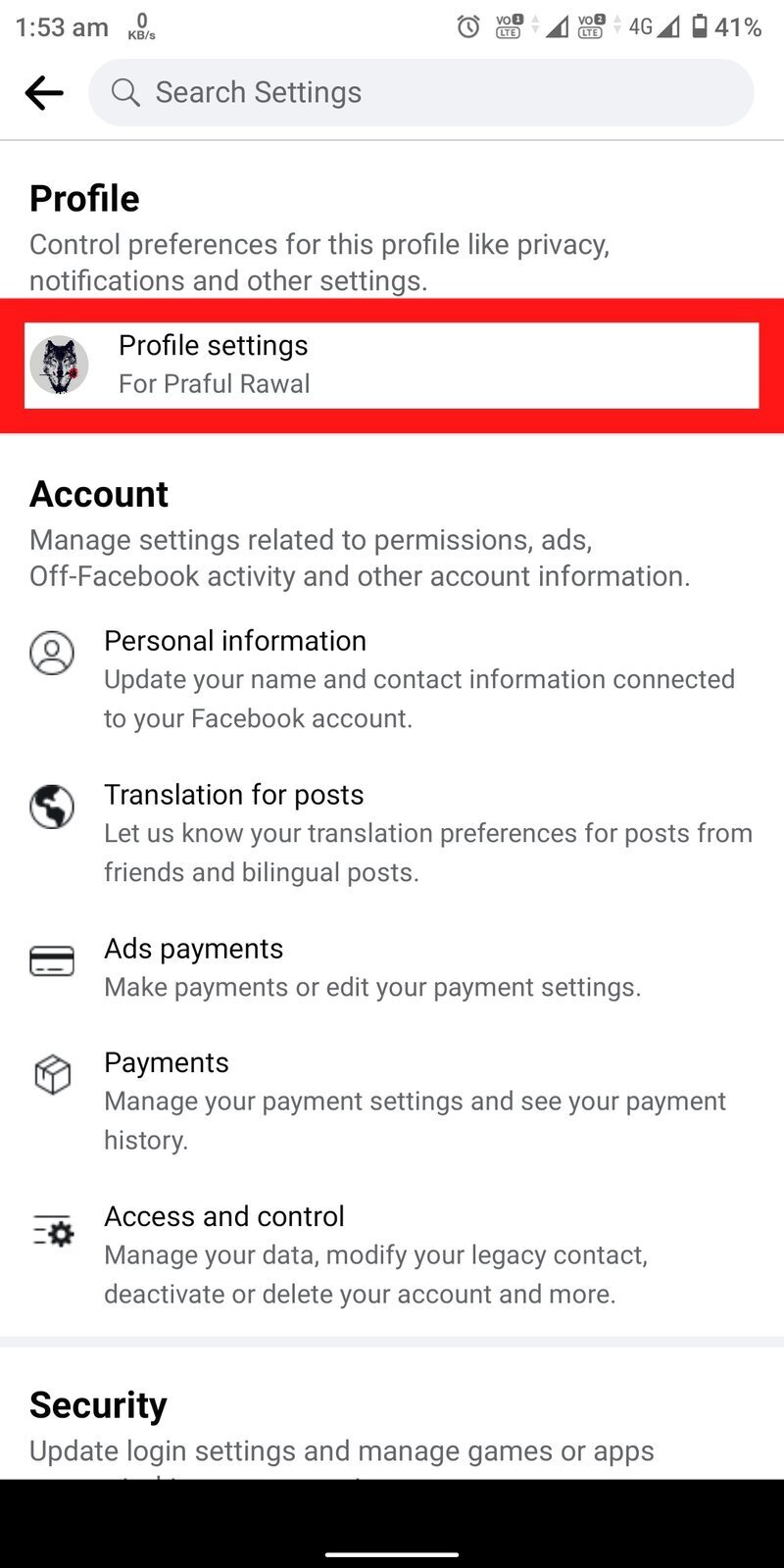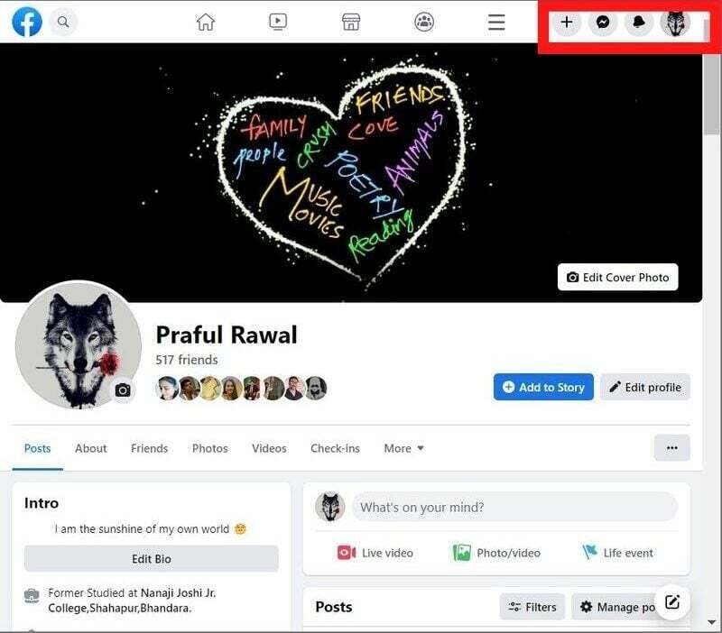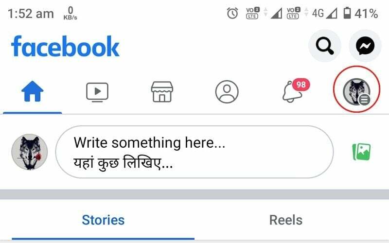 1단계 : Facebook 계정에 로그인하고 ' 프로필 아이콘 '을 탭합니다.