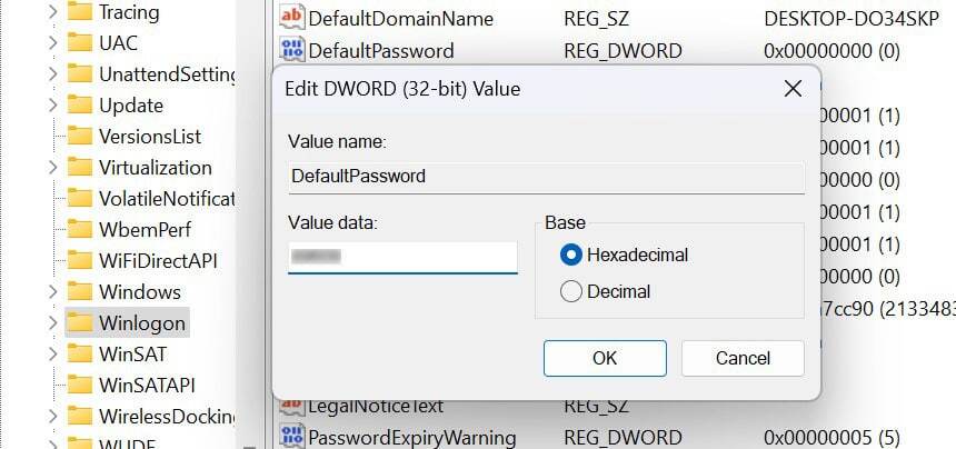 11. 값 데이터 아래에 제공된 상자에 계정의 비밀번호를 입력한 다음 확인을 클릭하세요
