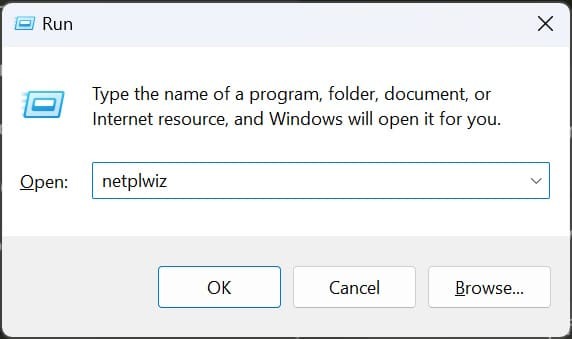 6. Windows + R을 눌러 실행 프롬프트를 엽니다 그런 다음 Enter 키를 누르기 전에 netplwiz를 입력하십시오