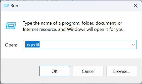 1. Windows + R 을 통해 실행 프롬프트를 엽니다 그런 다음 regedit를 입력 하고 Enter를 누르십시오