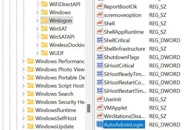 이를 비활성화하려면 AutoAdminLogon, DefaultUSerName 및 DefaultPassword를 특정 순서로 삭제할 수 있습니다.