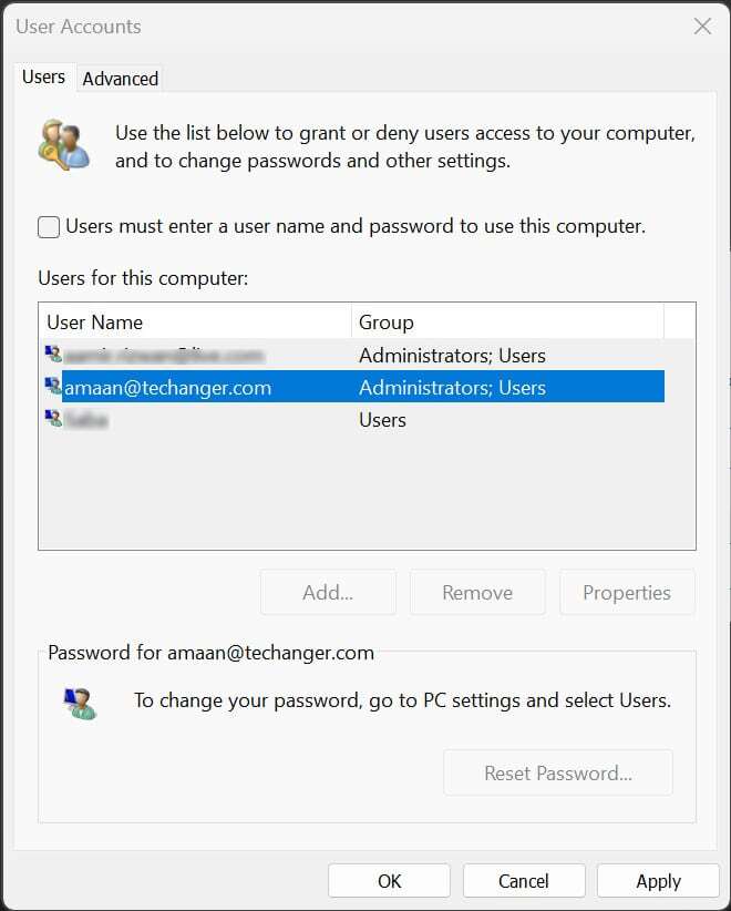 이제 선택한 계정에 설정된 이전 비밀번호가 제거됩니다. 컴퓨터를 다시 시작하여 Windows 11에서 자동 로그인이 제대로 작동하는지 확인할 수 있습니다.