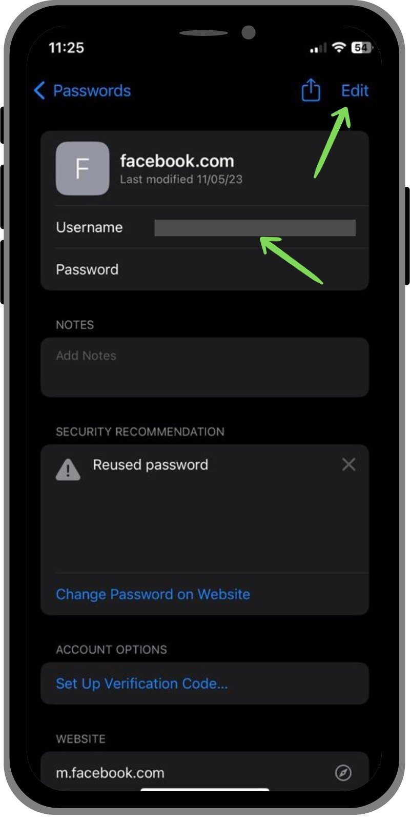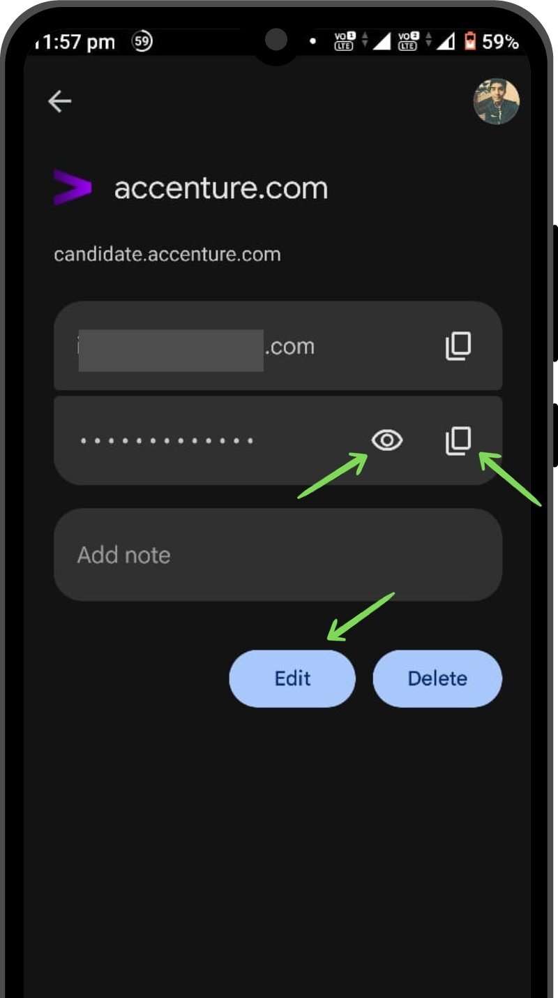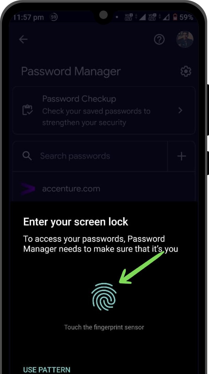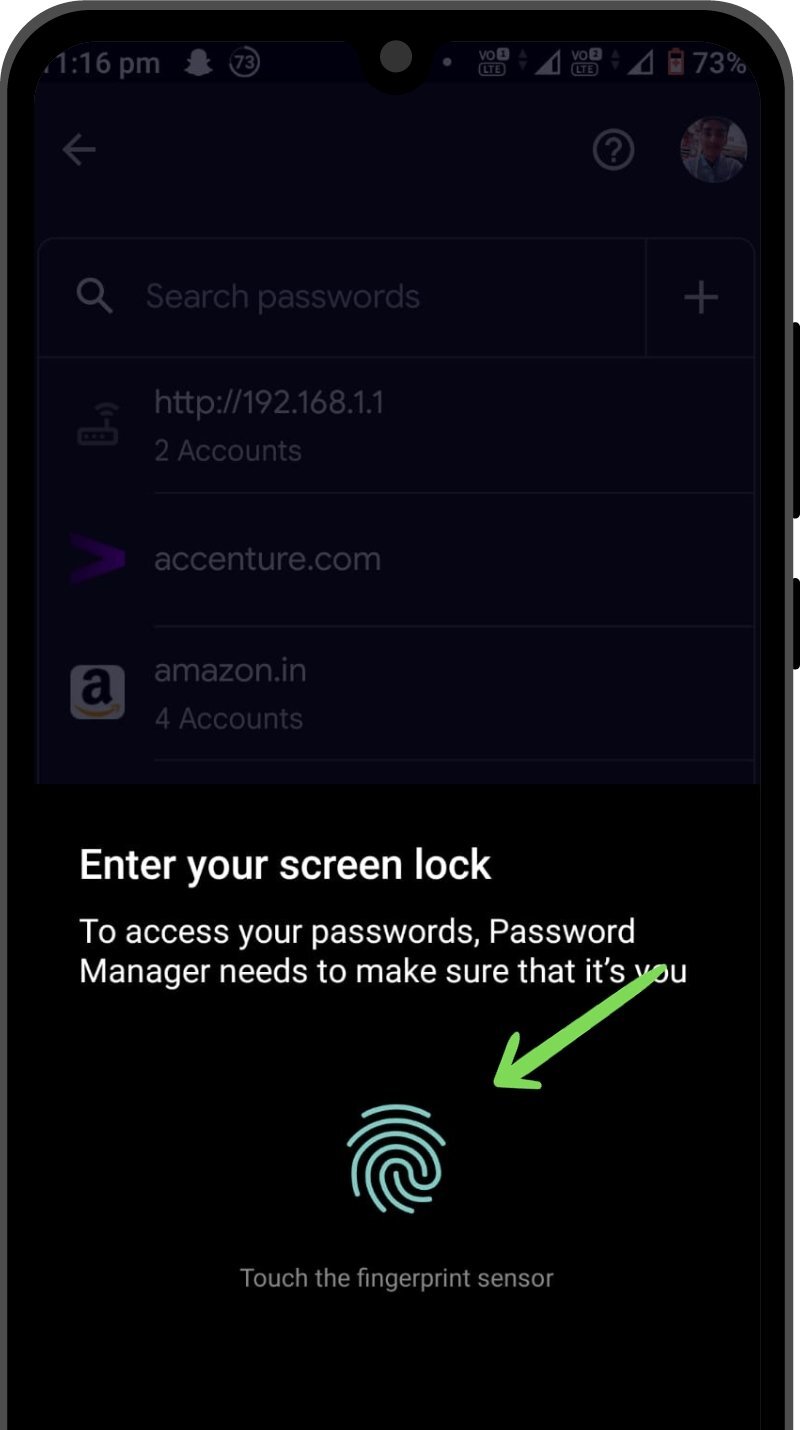- 검색하려는 비밀번호를 탭하세요. 생체 인증(지문/비밀번호/핀/얼굴 스캔)을 묻는 팝업 창이 나타납니다.