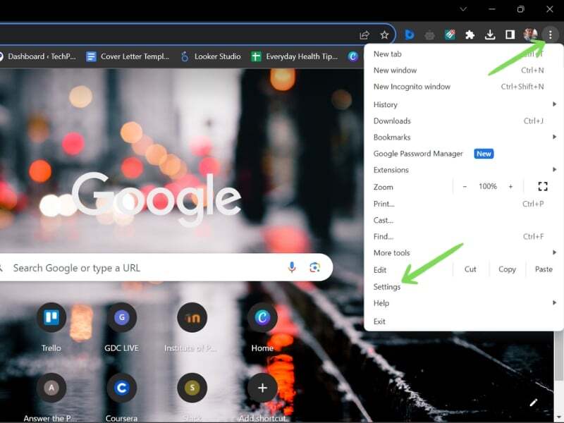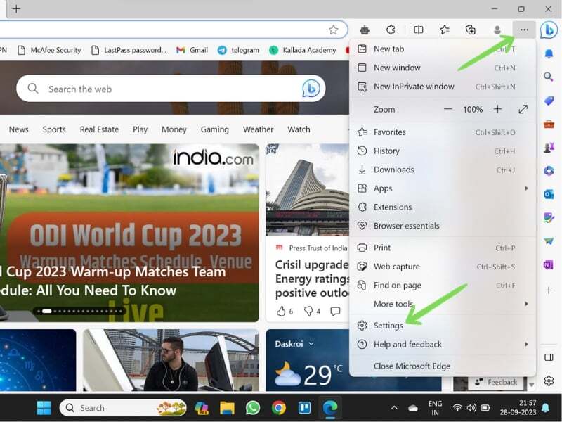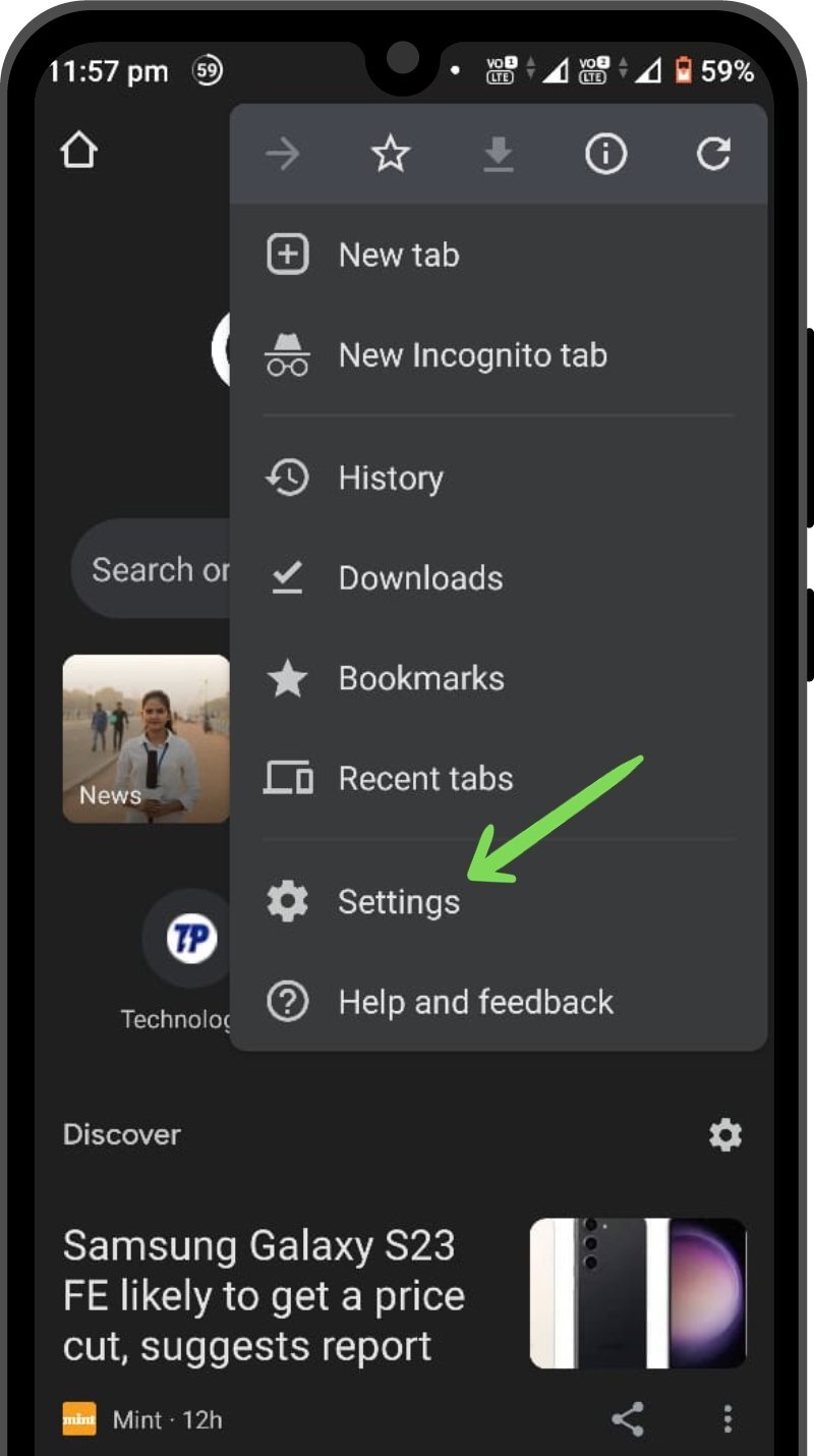 - 오른쪽 상단에 있는 세 개의 수직 점을 클릭 하고 설정 으로 이동합니다