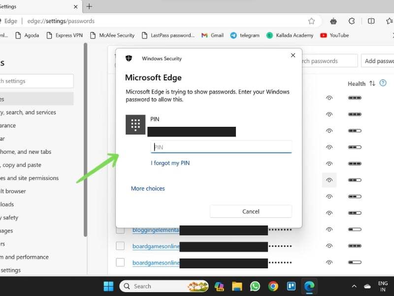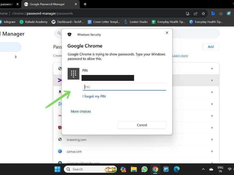 - 비밀번호를 검색하려는 웹사이트를 클릭하세요. 관리자 비밀번호를 입력하라는 메시지가 표시됩니다