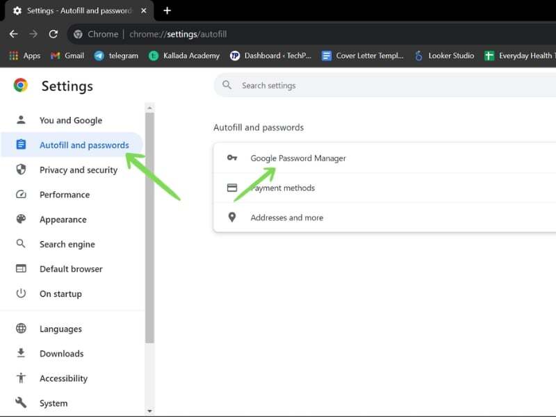- 이제 자동 완성 및 비밀번호 로 이동하세요 그런 다음 Google 비밀번호 관리자를 클릭하세요