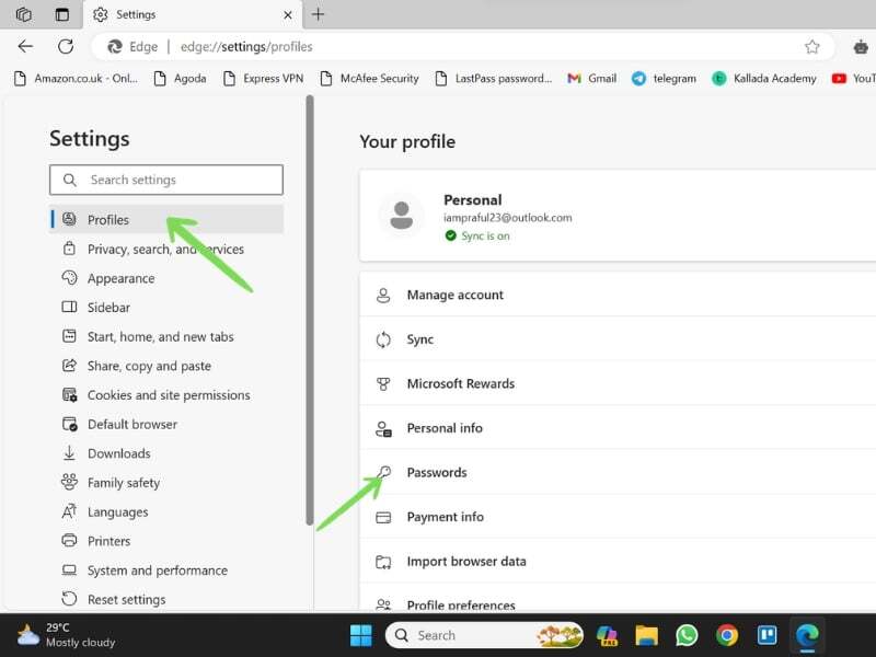 마찬가지로 Safari, Brave, Firefox 또는 Opera와 같은 다른 브라우저를 사용하는 경우 설정>프로필>비밀번호 에서 저장된 비밀번호를 찾을 수 있습니다