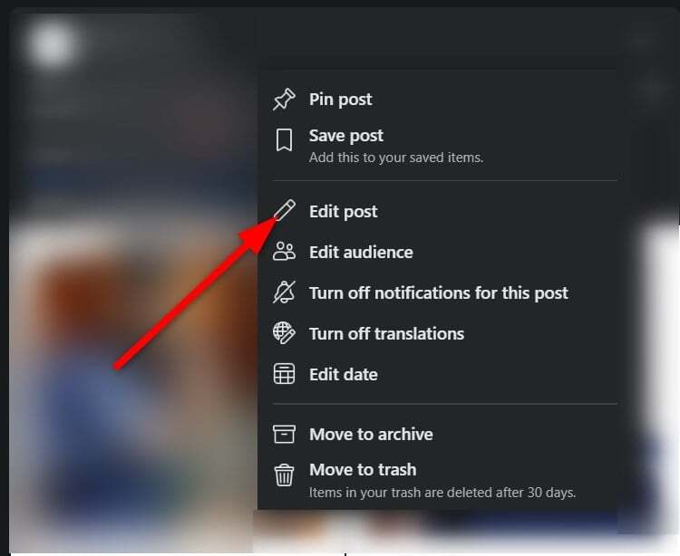 - 표시되는 메뉴에서 게시물 편집을 선택합니다