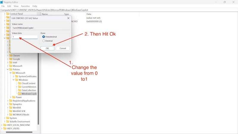 레지스트리 해킹을 사용하여 윈도우에서 코파일럿 비활성화