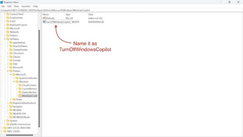 여기에서 Windows 코파일럿 끄기를 클릭 하고 편집합니다.